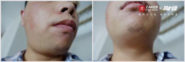 使用感受方面,先來說一下須眉剃須刀T3的使用感受,我平時每天早上都有剃須的習慣,但偶爾也會忘記,不過按正常計算,一個星期剃須5次肯定有的,為了印證須眉剃須刀T3的剃須效果,我也是特意兩天沒有剃胡須,從下圖可以看到,兩天沒有剃,嘴巴的兩邊和下巴這里就已經多了,那么在使用上給我的感受就是特別的舒適,剃須的時候這個清脆的咔咔聲還是很明顯的,基本上一遍而過,也不用照鏡子剃須,也是很干凈的,最主要的是因為很貼盒皮膚,也不會刮傷皮膚,真的很不錯,在這幾天的使用上,我很是滿意,小巧便攜剃須干凈利落。