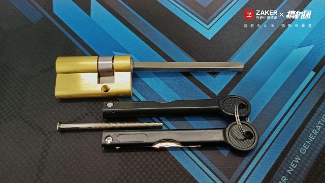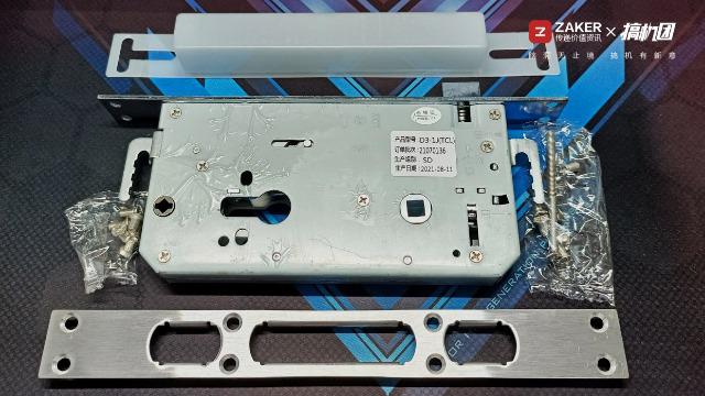 先來看上層,這里面包含了門鎖的開孔紙規、說明書、鎖芯、鎖體、門鎖鋰電池、門禁卡和其他安裝配件。鎖芯方面采用了目前市面最高規格防暴力拆除的C級防盜鎖芯,特有的防撬鎖死功能還是比較放心的。