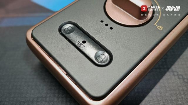 取出下層的內外面板,X7S采用了推拉式的結構,整體以黑色玻璃面板和玫瑰金金屬搭配,看起來還是很大氣的。