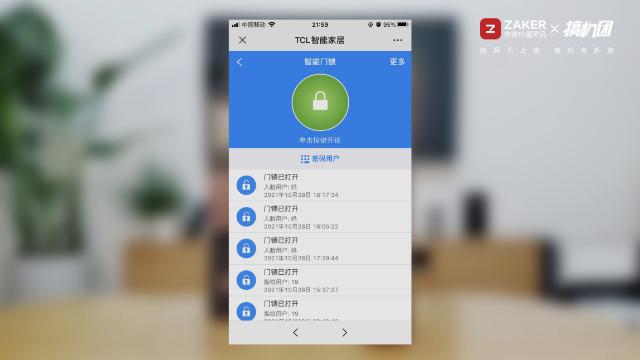 最后你也可以通過綁定微信遠程解鎖,關注微信“TCL智能家居”公眾號,按照說明讓門鎖連接家里2.4GHz的WI-FI信號綁定門鎖,這樣就可以實現遠程的開門。在門鎖控制頁面,不僅可以遠程解鎖也可以看到門鎖的解鎖記錄和用戶管理。我很喜歡這種應急的解鎖方式,不用單獨占用你一個APP就能實現遠程的門鎖控制。