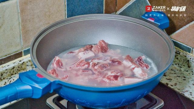 然后再加入清水、料酒和八角,蓋上鍋蓋,開始大火燒開,燒開后可以看到密封鍋蓋產生微壓,能讓排骨燉更短時間。