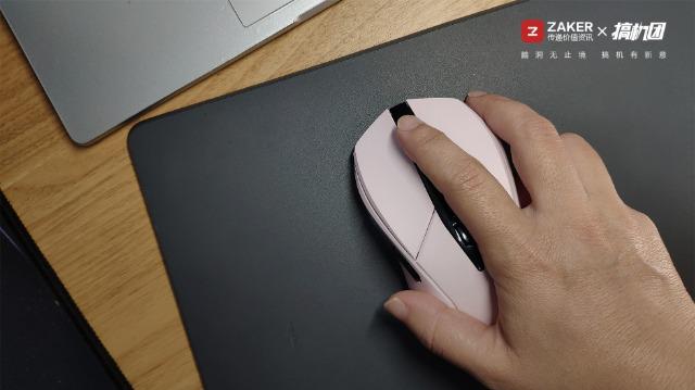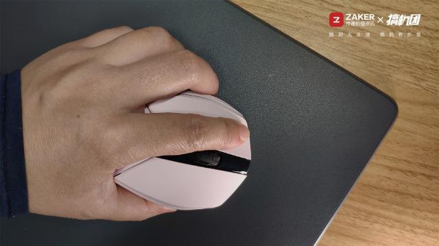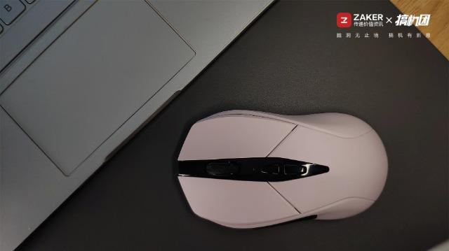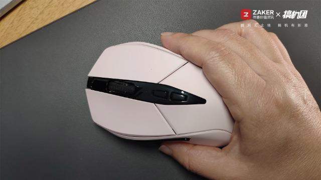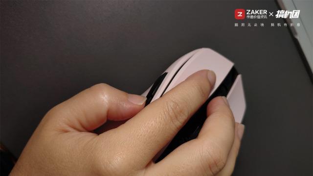 前端大尺寸按鍵,后端大角度收腰,收腰外側為無名指提供非常舒服的停靠位置,整體結構中心偏后,同時抬高尾部給手掌根部一定支撐,又不會頂住手心,實則為中小手抓握設計準備,兼容不同握姿及握法,抓握+指握,122握法+131握法,整體造型非常有辨識度。