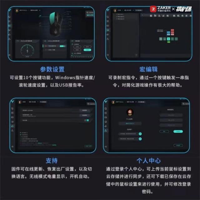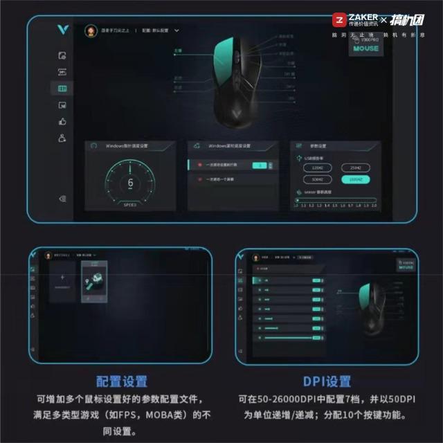 鼠標的專屬性,游戲玩家感觸頗深,雷柏V300Pro當然更可以實現,通過配套驅動軟件,保存多組配置文件,可完成(DPI、宏定義)等多種自定義設置,并通過登錄V系列智能云存儲,將配置文件上傳至云共享,分享給其他玩家,怎么趁手怎么來,越用越順手。滿足多類游戲(如FPS、MOBA類)的不同設置,DPI設置可分配10個按鍵功能,可設置10個按鍵參數功能,Windows指針速度/滾輪速度設置,及USB報告率,可錄制宏指令,通過一個按鍵觸發一串指令,簡化游戲操作等非常實用的功能性設置實現。